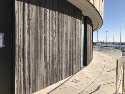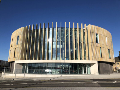 The Word is a new build award-winning library and cultural centre designed by Faulkner Brown Architects to resemble the pages and spine of an opened book. Classic Masonry was tasked to design, manufacture and install various precast concrete cladding elements including black textured cladding to the ground floor curved walls; radiating, sloping and curved paving. White concrete fins were created for the main entrance to complete the overall aesthetic of the building.